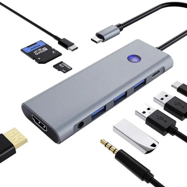 Performance Master 9-in-1 USB C Hub with 100W PD Charging, 4K HDMI, USB 3.0/2.0, SD/TF Card Reader, Audio Jack - Compact Adapter for MacBook, Windows, iPad, Linux & More