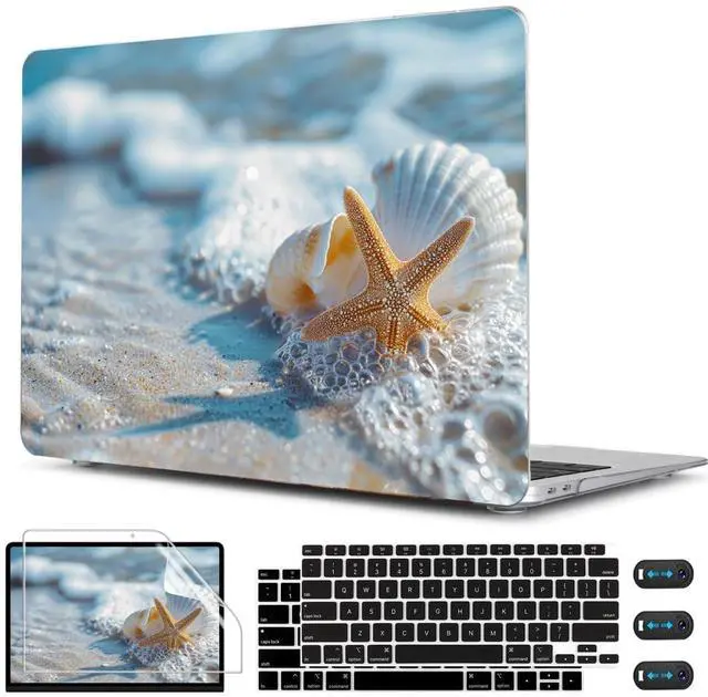 CISSOOK Compatible with MacBook Air 13-inch Case 2021 2020-2018 Release M1 A2337 A2179 A1932 Model with Touch ID, Plastic Hard Shell Protective Case with Keyboard Cover Screen Protector, Beach&Shell