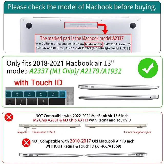 *[(WARNING: )] This case is NOT FOR MacBook Air 13.6-inch M2 A2681/M3 A3113 2022-2024 Release. Please kindly check the model number "Axxxx" on the back of the laptop before purchase, make sure you choose the right model as the listing title stated "A2337"or "A2179" or "A1932". It will NOT FIT your MacBook if you choose the WRONG size.