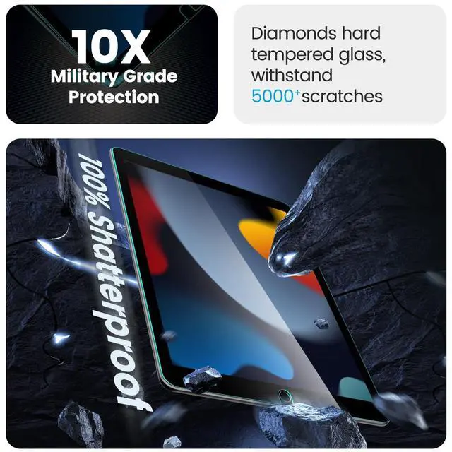 Perfect Compatibility: Specially designed for Apple iPad (9th generation, 10.2-inch, 2021), iPad (8th generation, 10.2-inch, 2020), iPad (7th generation, 10.2-inch, 2019). Precise laser cut tempered glass and perfect fits, compatible with all kinds of cases in the market