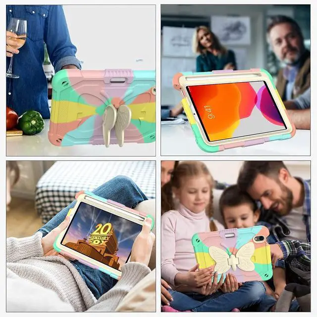 Features: -High quality silicone back shell protects from drops, shocks, scratches; Stylish and durable, easy to install and remove. -The ipad mini 6th generation case is built-in Kickstand and Pencil holder. Meet the needs of children to study and watch videos. -Precise cutout design, easy to access all features without removing cases. (buttons, speakers, cameras). -2 in 1 design rugged tablet case provides protection to keeps the your iPad mini 6 safe and secure.