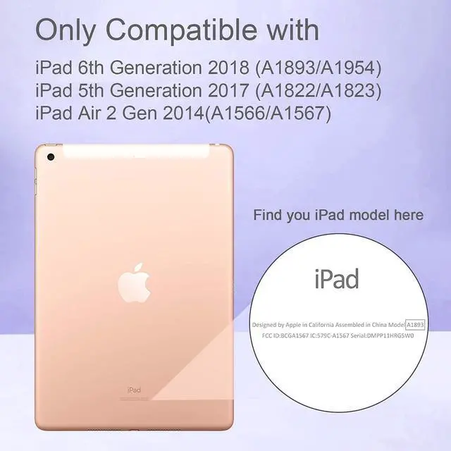 [Compatibility]- ZoneFoker glitter tablet case is only compatible with new Apple iPad 6th/5th generation 9.7 inch 2018/2017 release (Model number: A1893/A1954/A1822/A1823), 2014 iPad Air 2 (A1566/A1567), not fit other model.
