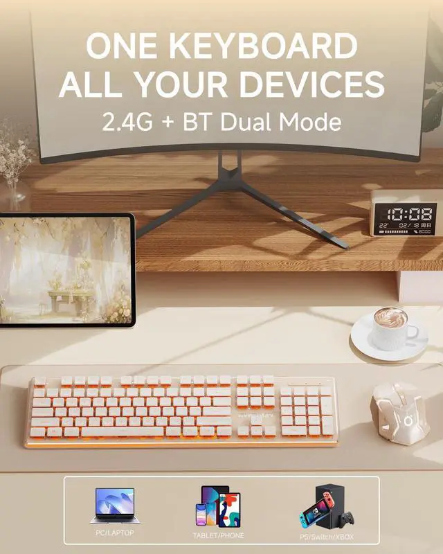 Thickened Metal Panel & Single Backlight: Bluetooth keyboard and mouse uses thickened metal panel with frosted matte finish, which has upgraded touch and provides great anti-scratch protection, making it more durable. Wireless mouse and keyboard uses upgraded suspended water drop pudding keycap, which is silent and has great light transmittance. When the single warm backlight is turned on, the aesthetic keyboard and mouse will instantly shine. 5 adjustable brightness levels.
