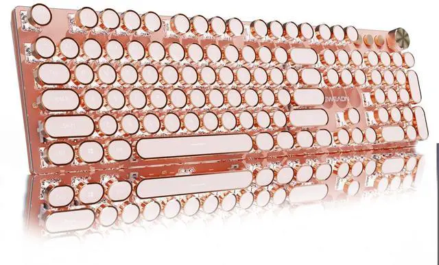 Retro Typewriter Mechanical Keyboard:The typewriter gaming keyboard has mechanical custom pink switches that feature a smooth linear feeling, and low resistance without a tactile bump feel. round keycaps of the punk mechanical keyboard look like a classical typewriter. Keycaps have a matte texture and upgraded touch feel and the sound is quiet when the button is pressed lightly giving you a comfortable typing feeling and a stable click touch.