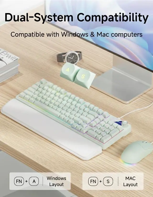 Dual-Function Multimedia Smart Knob: Take total command with the C98 pink keyboard and its integrated smart rotary dial, a centerpiece designed for a high-speed multitasking workflow. Seamlessly toggle between Lighting Modeadjusting brightness and effects with a simple twistand System Volume Mode via the FN+Knob shortcut. Whether youre muting a call in a split second or dialing in the perfect volume, this USB keyboard offers a tactile interaction that keeps your hands on the keys and your eyes on the goal ^^ Real-Time Display Screen & Whisper-Quiet Keys: Eliminate the guesswork with a built-in display screen that provides at-a-glance status updates on your active settings. Both the mouse and the quiet-touch keyboard and mouse are precision-engineered for a low-profile, noise-dampening task execution, making them the premier choice for late-night home studios or professional open offices. The companion wired mouse features 4 adjustable DPI levels (up to 4800), ensuring your tracking is as sharp as your focusall while remaining virtually inaudible to those nearby ^^ True Plug-and-Play & Universal OS Bridge: Forget complex drivers; this keyboard and mouse wired combo is ready to perform the second it hits your USB port. Tailored for the modern multi-device lifestyle, it features dedicated FN+A/S shortcuts for effortless transitioning between Windows and macOS environments. Fully compatible with PCs, laptops, and Mac workstations, this keyboard provides the ultimate operational utility for users who demand reliability across every platform they own