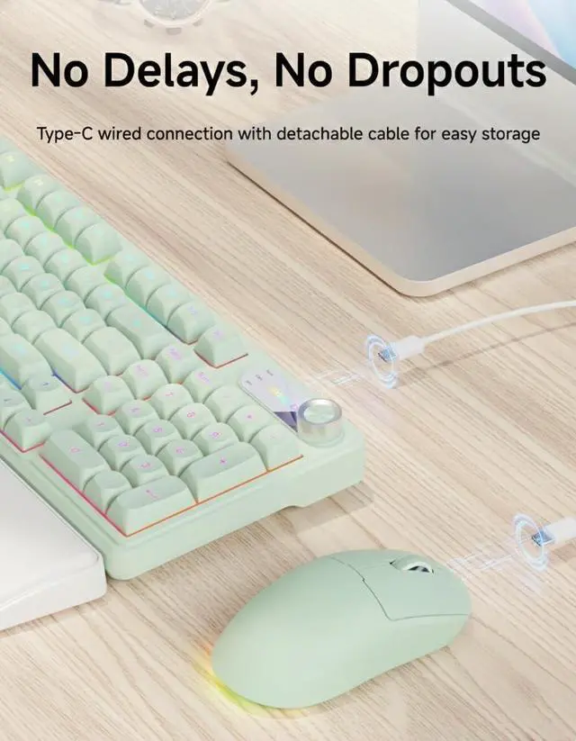 Dynamic RGB & Shine-Through Clarity: Transform your workspace with the C98 wired keyboard and mouse combo, boasting 12 immersive lighting presets like Rainbow Streamer and vivid Neon glows. Crafted with premium double-shot injection keycaps, every character remains crystal clear and immune to wear, ensuring your keyboard looks brand new for years. With the one-touch FN+ESC factory reset, switching back to your signature style is instantaneous. For those navigating beyond standard computer keyboards, this 98% layout delivers the perfect balance of compact design and full functionality ^^ Cloud-Soft Wrist Rest &