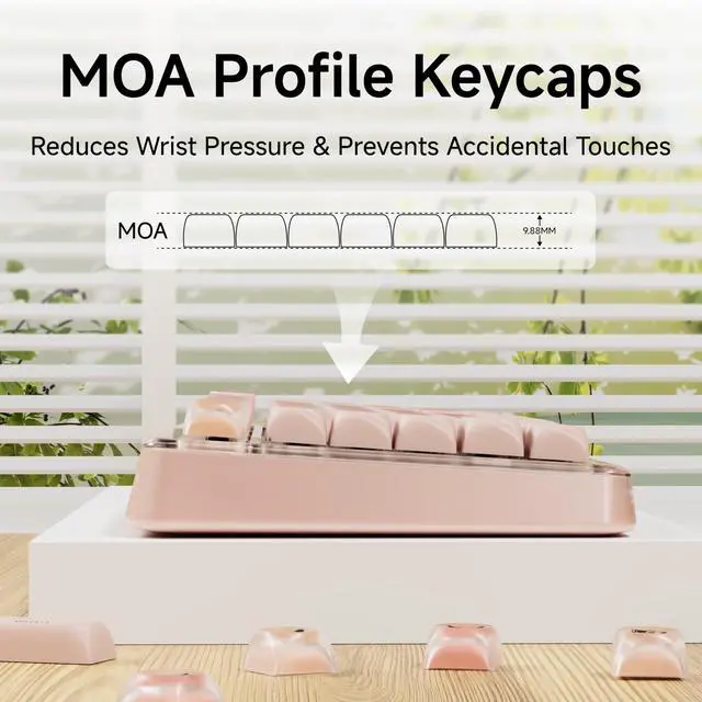 PBT & PC Jelly KeycapMade from PBT and PC material, these Jelly keycaps have a smooth, gradient look that can handle daily typing. The letters on these PBT keycaps wont fade, and the surface stays clean without picking up fingerprints easily ^^ MOA Profile KeycapsMade with a rounded MOA keycap shape for comfort and better typing, these custom keycaps fit your fingers well to help reduce tiredness and avoid mistakes during long work or play ^^ Translucent Pink KeycapsThese pink keycaps can emit a beautiful translucent effect under soft RGB lighting. The gentle light is easy on the eyes and is perfect for working or playing games late at night, brightening up your desktop ^^ Wide CompatibilityFull-key cute keycaps for mechanical keyboards have a total of 132 keys, suitable 60%, 75%, TKL, and full-size layouts keyboards(61/64/68/84/75/87/96/980/104/108 keys), and fits Cherry MX and Gateron switches perfectly ^^ Whats Included In the