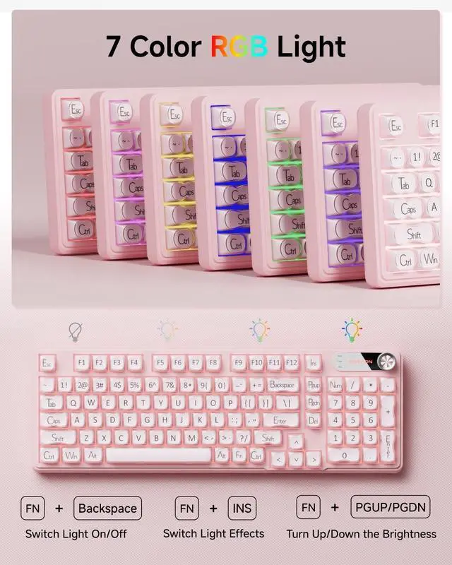 ^^ 98-Key Compact Layout: The 95% layout silent keyboard combines a full-featured 98-key layout with a versatile rotary knob, saving space while providing all the functionality you need. Ideal for multitasking and compatible with Windows, Android and Xboxseamlessly switch between devices without missing a beat. ^^ Dedicated Knob &