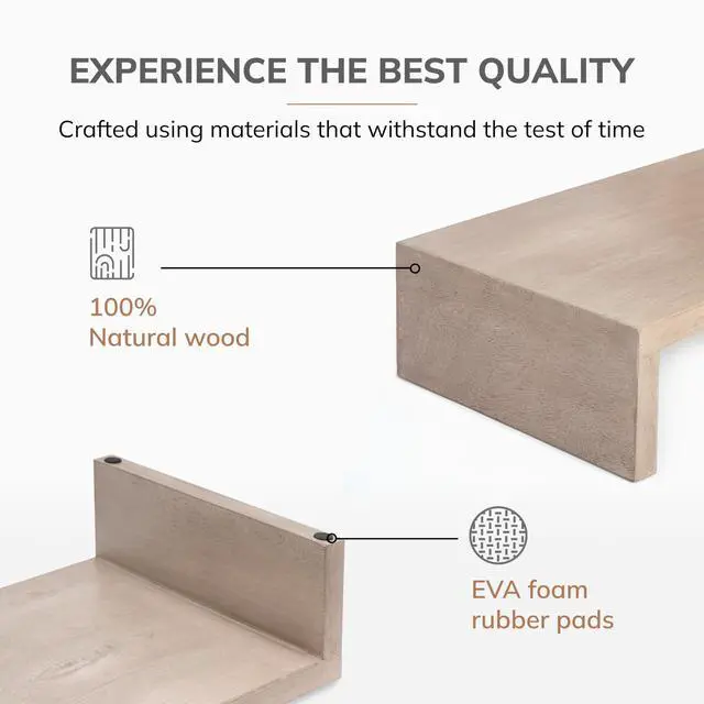 Whether you are gaming, designing, or working on spreadsheets, this monitor riser for desk use ensures comfort and accessibility, enhancing your overall productivity. The Anji Mountain monitor stand for desk is a versatile companion for your office or home setup. Use it as a desk shelf to organize your workspace, keeping your keyboard, mouse, and other essentials neatly tucked underneath. This dual-purpose desk riser also acts as a storage solution, maximizing your desk space and keeping your area clutter-free. Ideal for any desktop, this wooden monitor stand for desk is engineered to hold a variety of monitor sizes and weights, making it a reliable choice for all your electronic devices.