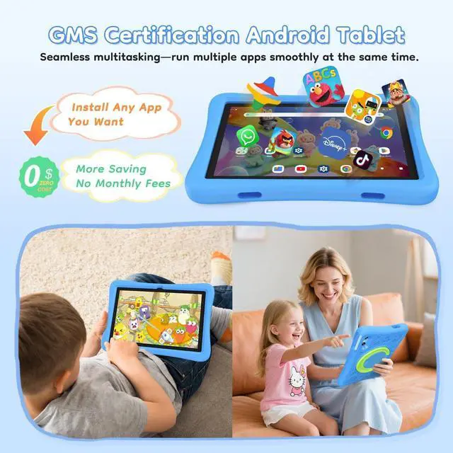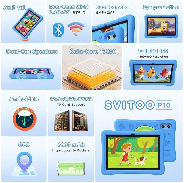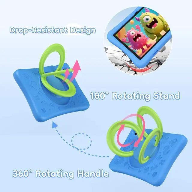 Whether at home car school, this kids tablets with preloaded games tablet cases provides resist drops and bumps. ideal for toddlers and kids ^^ Built In GPS Navigation + Eye Protection Night Mode + Face Unlock + Split Screen Multitasking + Wireless Casting To Smart TVs, Android kids tablet GPS makes it easy to use maps or parents track location while traveling, while Eye Protection for better viewing. facial recognition technology allows for quick and secure unlocking of the device. split screen multitasking wireless casting, children can stream cartoons, nice tablette with GPS for kids, a child Android tablet writing tablet ^^ 10 Inch Touchscreen HD IPS Display + 12GB Ram + 128GB Storage + 1TB Microsd Expandable (Sold Separately), Ample storage and expandability with 12GB ram (4GB + 8GB) and 128GB internal storage, slot expandable up to 1TB via a microsd card, providing ample space for apps bundle, learning work reading.