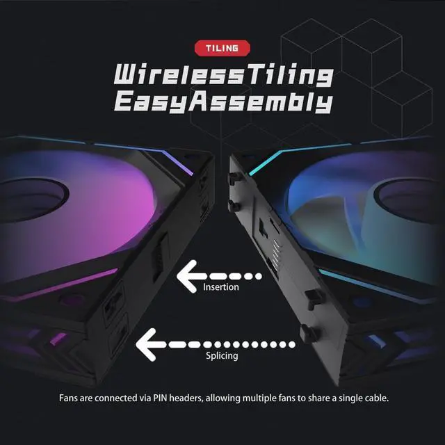 Experience next-level PC cooling with the Ruix J1 120mm ARGB Case Fan 3-Pack, designed for builders who value both performance and simplicity. The J8 features a tool-free snap-on connection system, eliminating the need for messy cables between fans. With a clean and modular design, installation is faster and your build stays neater. Enjoy brilliant ARGB lighting effects with full customization through your motherboards 3-pin 5V ARGB header. Whether you're syncing colors with the rest of your setup or creating unique patterns, the J8 offers smooth, vibrant illumination across your rig.