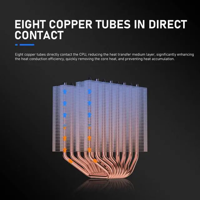 Designed for enthusiasts who demand flagship-level cooling, the RUIX GT820 combines 8 heat pipes with a reinforced dual-tower structure to handle extreme workloads and up to 240W TDP with ease. Its 130mm high-performance PWM fan generates storm-level airflow and static pressure, rapidly dissipating heat while keeping noise low. Compatible with AMD AM4/AM5 and Intel LGA 1700/1200/115X/2011/1851, the GT820 offers secure installation and long-term durability. From overclocking to rendering and high-end gaming, the GT820 provides superior cooling headroom, making it the ideal choice for power users and performance builders.