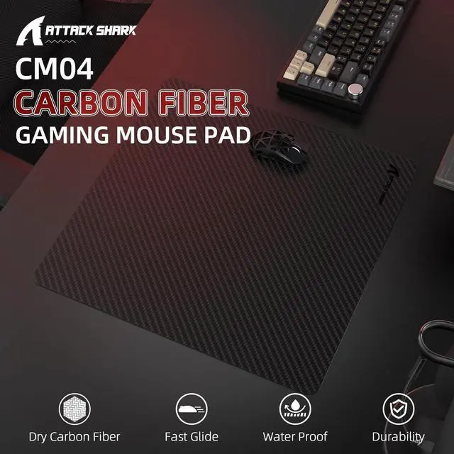 [(YINDIAO x ATTACK SHARK Carbon Fiber Mouse Pad with Stability)] This CMO4 game mouse pad is made of real carbon fiber material and environmentally friendly polymer frosting layer. Carbon fiber mouse pad is a professional game mouse pad with silky flat stick stability, which can ensure the smooth slide of the mouse, while maintaining accurate positioning to avoid broken contact and drift. Note: Due to the characteristics of carbon fiber, please do not bend the mouse pad, otherwise it may cause the fiber to break.