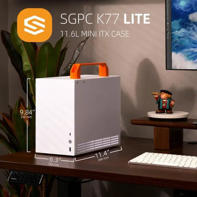 SizeUltra-Compact Mini ITX Case measuring 290 x 160 x 250 mm ( 11.4" x 6.3" x 9.8" ), with a volume of 11.6L, including two optional handles (one plastic, one leather). ^^ Material QualityThe case is constructed from 1- 1.5 mm thick steel, complemented by a 3mm tempered glass side panel for durability and aesthetic appeal. ^^ Front I/OFeatures dual USB 3.0 and Type-C ports via a single 19-pin motherboard connector, delivering high-speed data transfer of up to 5GB/s. ^^ Motherboard and PSU CompatibilitySupports ITX motherboards up to 170x170mm. When paired with an SFX PSU, it can also support non-standard mATX motherboards up to 225 x 208mm ( 8.86" x 8.19" )
