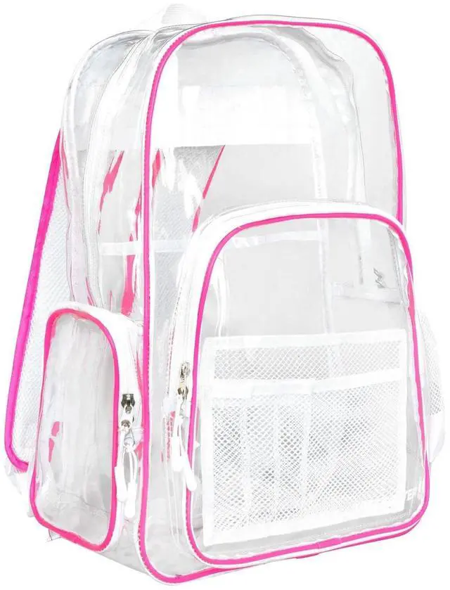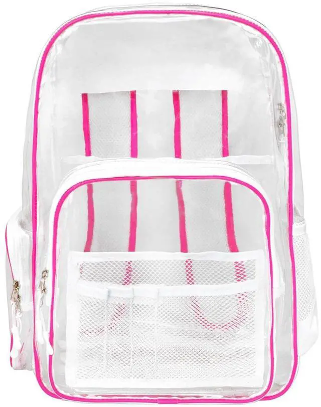 Meister All-Access Clear Backpack - Meets School & Event Security Bag Requirements - Pink/White