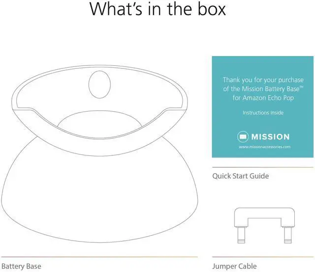 ^^ WHATS INCLUDED: Mission Battery Base and Quick Start Guide for easy setup.