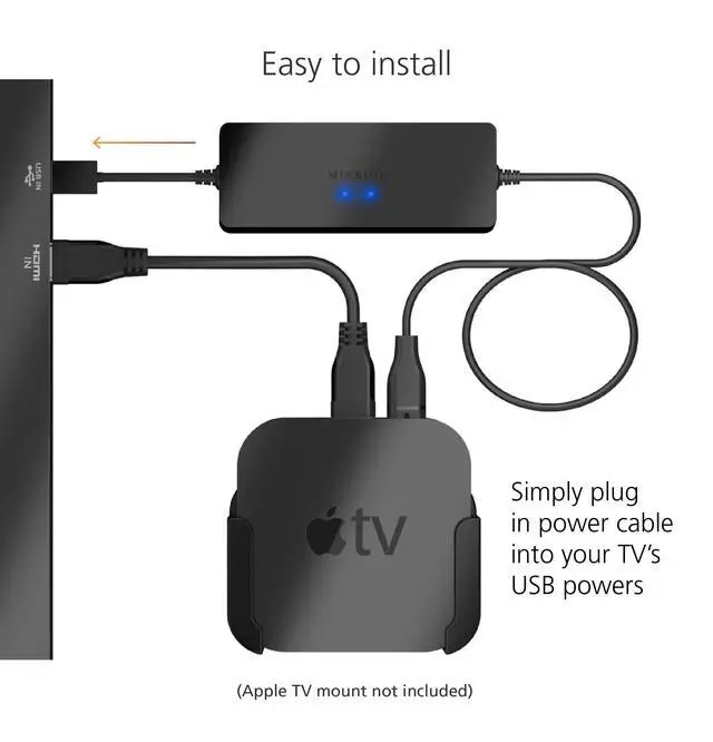 AVOID HASSLE: Eliminates the need to find an AC outlet near your TV by powering Apple TV directly from your TV's USB port.
