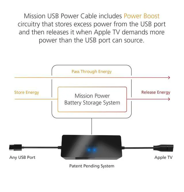 ^^ UNIVERSAL: Compatible with all powered USB TV ports. The integrated energy storage circuit embedded in the cable enables the use of Apple TV with any powered USB port.