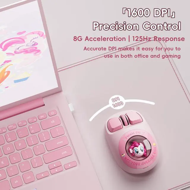 My Little Pony Wireless Mouse - Pinkie Pie Edition, 3D Character Design Mouse with 1600 DPI, Dual-Mode (2.4GHz/Bluetooth), Ergonomic for Mac/Windows