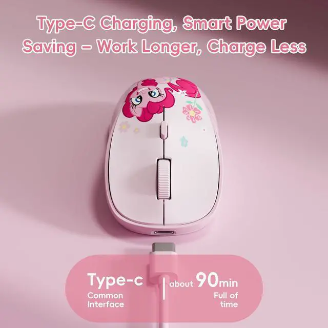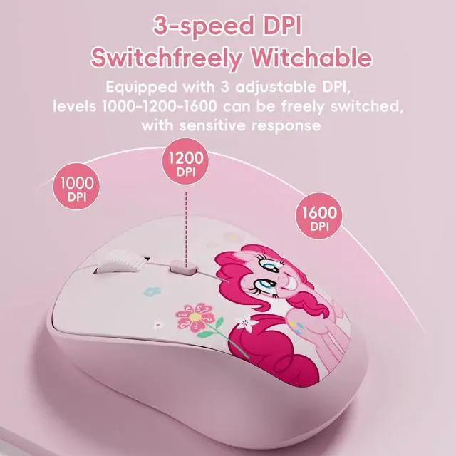 My Little Pony Pinkie Pie Wireless Mouse - 4-Button Silent Click Mouse with 3 Adjustable DPI (1000/1200/1600), 2.4GH z Wireless for Windows/Mac - Compact & Ergonomic Design, Pink