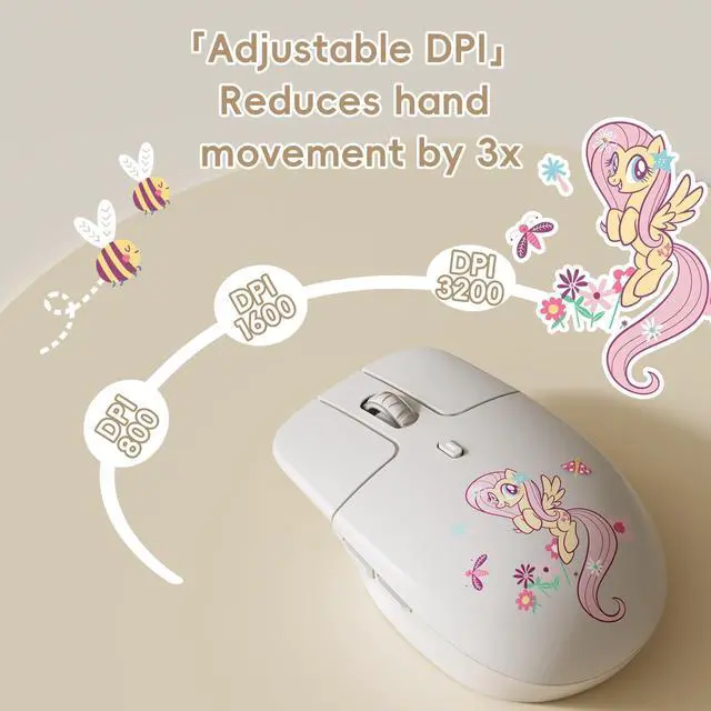 Add a touch of magic to your workspace with this enchanting My Little Pony Twilight Sparkle wireless mouse. Featuring silent click technology for distraction-free operation, this versatile mouse offers three adjustable DPI settings (800/1600/3200) to match your precision needs. The dual-mode connectivity gives you the freedom to switch between 2.4GH z wireless and Bluetooth connections, making it compatible with both Mac and Windows systems. Its compact and ergonomic design ensures comfortable use during long computing sessions, while the charming Twilight Sparkle theme brings personality to your desk setup. Whether you're working, browsing, or gaming, this mouse combines functionality with fun, offering smooth cursor control and reliable performance.