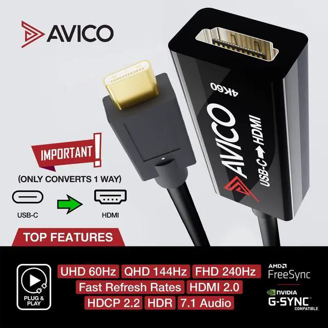 REQUIRES USB-C PORT WITH DISPLAYPORT ALT MODE OR THUNDERBOLTKey Features- Premium Taiwanese chipset from Certified HDMI factory- Works with 16:9, 21:9 Ultrawide, and 32:9 Super Ultra-Wide monitors (see pictures for specific compatibility) - Support for HDCP to play content from iTunes, Netflix, Prime, etc- FreeSync and G-Sync compatibleResolution / Refresh Rates1920x1080 240hz2560x1080 180hz3840x1080 120hz2560x1440 144hz3440x1440 100hz5120x1440 Not Supported3840x2160 60hz5120x2160 Not SupportedFAQ- Computer, monitor, TV, etc must all support faster refresh rates or will be limited to 60hz- Refresh rate for 4K is limited to 60hz or lower- This adapter does not charge devices.