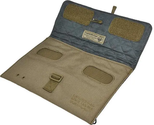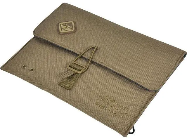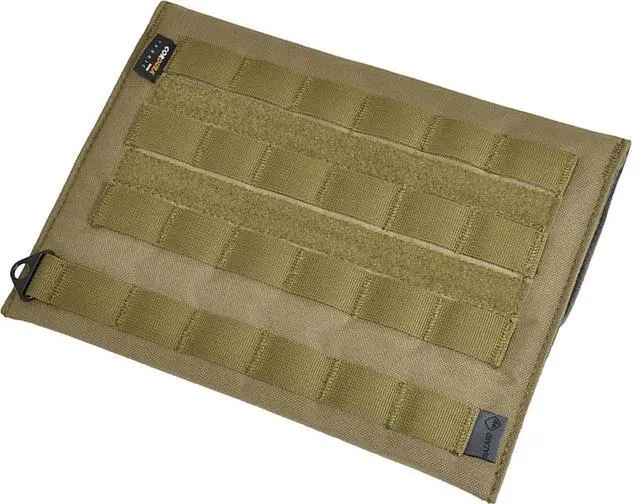 DescriptionThis sleeve can fit an iPad (R) w/ a thin over-case. It is made out of Cordura (R) w/ generous padding without being bulky, and its quilted interior protects iPads finish. The material is also quilted and colored like the interiors of a transport aircraft. The Launch-Pad includes back surface MOLLE for larger pouches to store anything from cameras to a charging brick, and smaller pouches for the photo-kit reader, usb cables, flash-drives and mil-spec items like folding knives/multi tools, water bottle pouches, etc. The back has a fuzzy loop area.