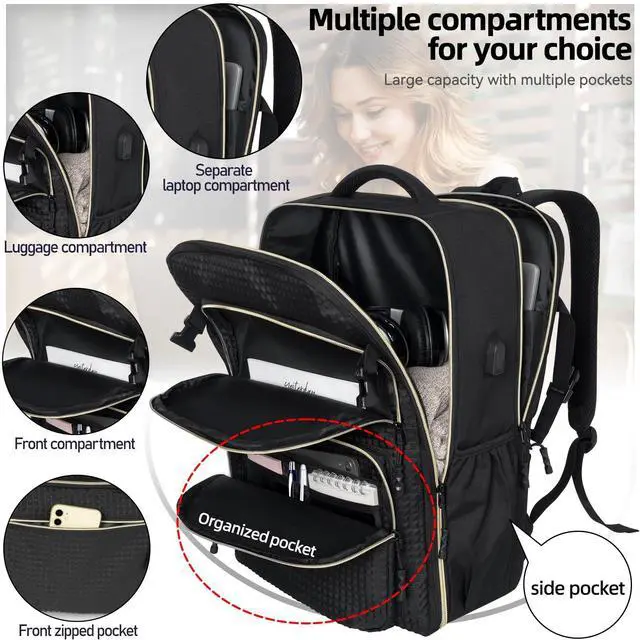 Stay Connected On-the-Go: Comes with a USB charging port (power bank not included), so you can charge your phone or tablet while walking. The luggage strap on the back allows the backpack to slide over your suitcase handle for hands-free.