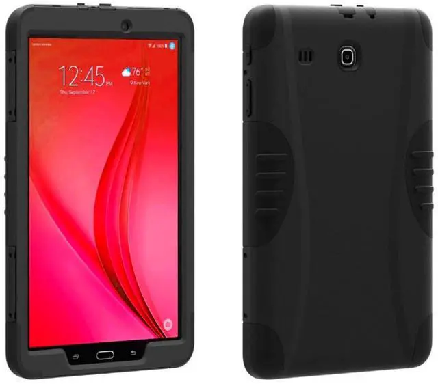Provides durable protection for the Samsung Galaxy Tab E ( 8.0" ) against scratches, bumps and dings. Specially designed to absorb shock and guard the surface from damage. Built-in screen cover protects the screen without affecting functionality. Slim, form-fitting design. Easy to attach and doesn't add additional bulk to the device. Shock-resistant Rugged kid-friendly case for Samsung Galaxy Tab E 8 tablet. Dual-layered case with hard cover and flexible soft Silicone TPU provides full protection for your Samsung tablet.