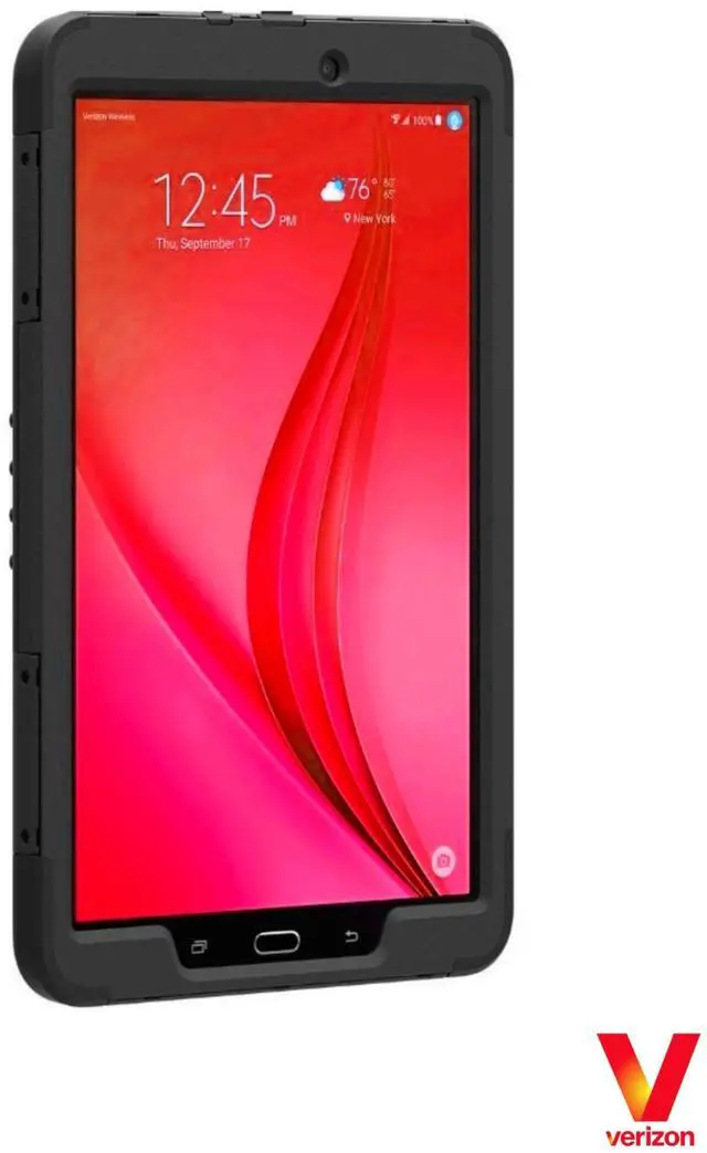 This Rugged Case from Verizon is specifically designed for the Samsung Galaxy Tab E 8'' to absorb shock and guard the tablet's surface against damage and daily wear and tear. The Rugged Case wraps the entire tablet, providing the comprehensive protection you need. The built-in screen cover keeps your display scratch free without affecting your touch screen's functionality. Access all keys and ports Custom cut-outs offer easy access to all keys and ports.