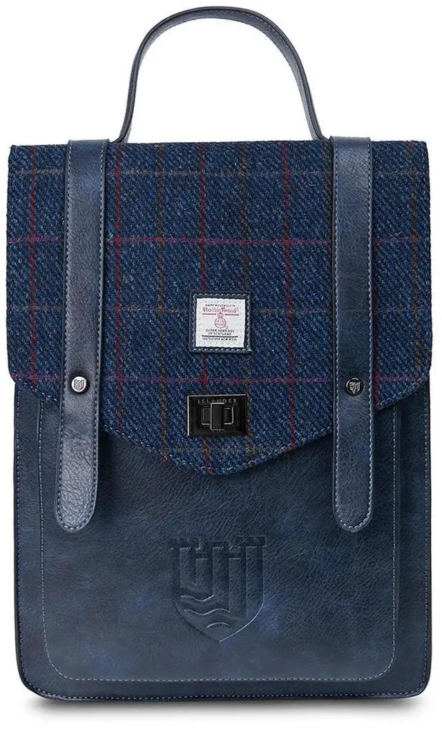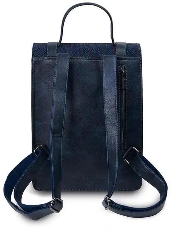 Islander Carloway Backpack for Men & Women, With Laptop Sleeve, Harris Tweed Vegan Leather (Navy Over-Check)