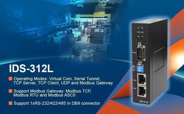 Operating Modes: Virtual Com, Serial Tunnel, TCP Server, TCP Client, UDP and Modbus Gateway.
