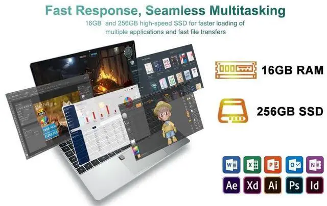 Balanced Performance for Daily TasksPowered by the celeron 6500Y processor, combined with 16GB of DDR3 RAM, this laptop offers reliable performance for seamless multitasking. The 256GB SSD provides ample space for storing your work files, study materials, and favorite media. Whether you're working on spreadsheets, writing reports, or streaming videos, it handles it all with ease, ensuring a smooth and efficient user experience ^^ Versatile Connectivity OptionsStay connected effortlessly with WiFi 5 and BT 5.0 wireless technologies. The laptop also features Mini HDMI and USB 3.0 ports, allowing you to connect to external displays for presentations, projectors for meetings, or other peripheral devices like printers and external hard drives.