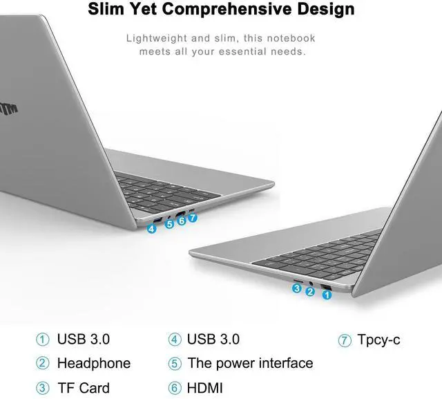 Portable Laptop: Your Smart Choice for Work, Study & Entertainment Designed for efficiency and portability, this 15.6" FHD laptop integrates cutting-edge technology with user-centric features. Powered by an celeron 6500Y processor (up to 3.4GH z) and 8GB DDR4 RAM, it handles multitasking seamlessly. The 512GB SSD delivers 5x faster read/write speeds than traditional HDDs, boosting productivity. The IPS full HD screen (19201080) with micro-bezel design showcases vibrant colors, while the low-blue-light technology reduces eye strain during extended use. The 180 hinge adapts flexibly to any scenario, and the ultra-light 1.6 kg body slips effortlessly into bags. A 46Wh high-capacity battery provides up to 5 hours of endurance for all-day mobility. Thoughtful details include a backlit keyboard (activated via Fn+F5) for typing in dim environments and a fingerprint reader for instant secure login. Connectivity excels with WiFi 5, Bluetooth 5.0, USB 3.0, Mini HDMI, and a multi-card reader. The HD webcam and noise-canceling mic ensure crystal-clear video calls for remote collaboration.