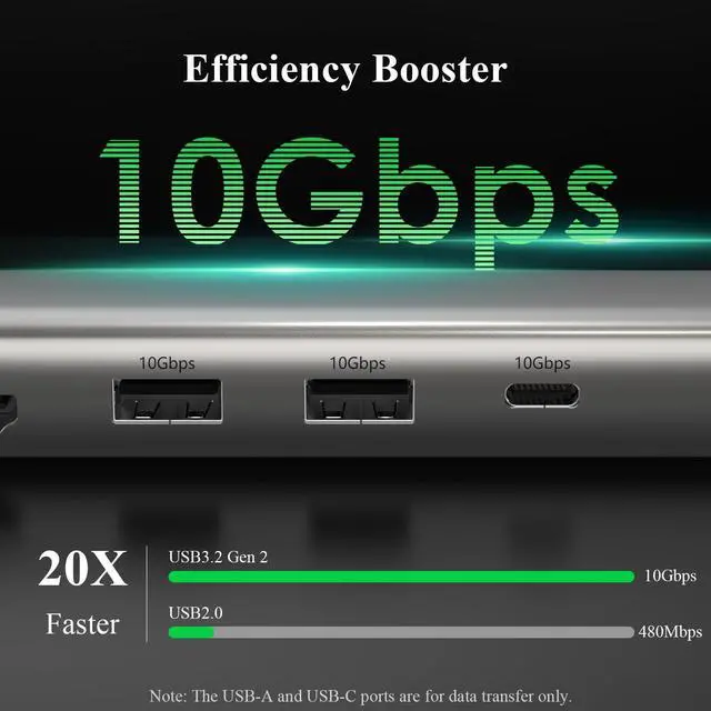 Note: USB-C port of your device should support charging. The power adapter and cable are not included. ^^ 10Gbps Data TransferSupercharge your connectivity with 3 high-speed USB 3.2 Gen 2 ports - delivering 20x faster transfers than USB 2.0 for lightning-quick file exchanges. Instantly move HD videos, high-res photos, and large audio files between USB drives or SSDs in seconds. ^^ 2.5 Gigabit Wired Connection Experience ultra-stable networking with this dock's built-in 2.5 Gigabit Ethernet port (backward compatible with 10/100/1000 Mbps), delivering faster speeds, lower latency, and more reliable connections than Wi-Fi. Ideal for gamers craving lag-free battles, streamers needing buffer-free broadcasts, and professionals requiring rock-solid connectivity for video calls and large file transfers. ^^ Portable Palm Size Measuring just 5.01. 40.6 inches and weighing a mere 2.8 ounces, this ultra-compact dock combines space-saving efficiency with exceptional portability - ideal for both office setups and mobile workstations. Its premium aluminum alloy housing not only delivers sleek durability but also provides superior heat dissipation to maintain optimal performance of internal components, ensuring reliable operation and extended product lifespan even during prolonged use.