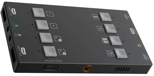 H2U supports 2 channels of 4K60Hz HDMI input with maximum refresh rate of 120Hz. It also supports 2 channels of analog audio input (active and passive). Additionally, it comes with I channel of HDMI (PGM) output, I channel of TYPE-C data UVC output and I channel of LINE OUT output, making it easy to achieve high-definition video capture, switching and mixing functions. Furthermore, during mixing, users can perform mixing functions for HDMI1/2 and MIC/LINE. H2U has an extremely low power consumption and only needs a single TYPE-C cable for power supply and image capture.