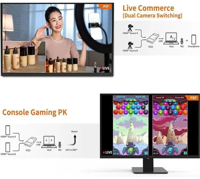 H2U also supports the use of common-level power banks for separate power supply, enabling transmission of dualchannel video and audio functions. This product is small and portable, requires no driver installation, and is quick to integrate compatibility with Windows or MAC systems.
