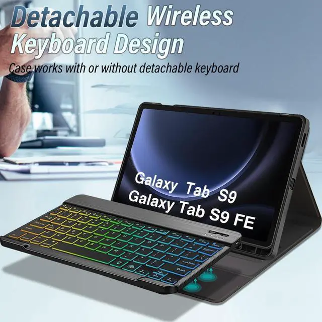 [(Rainbow Backlight)] Suitable for Samsung tablet S9/S9 FE RGB rainbow backlight keyboard, 7 adjustable backlight colors, breathing light backlight mode can be automatically switched. The backlit keyboard can be used in the dark, providing a comfortable typing experience.