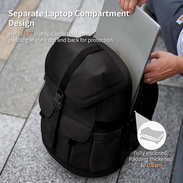 Unique Center Opening Design: Aji laptop backpack features an innovative central zipper opening design, providing a wide access main compartment that can expand up to 28L. The flexibility to adjust storage capacity by 22% allows you to customize your work or travel needs effortlessly.