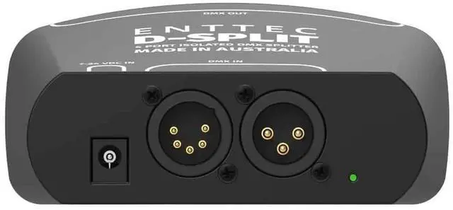 ENTTEC D-Split Features: DMX splitter that divides a 3- or 5-pin DMX input into 4 x 3-pin outputs Outputs function simultaneously to ensure