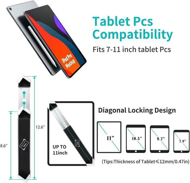 [(New Anti-Theft Design)] Diagonal locking design can make sure your tablet locked securely and you can easily take off your tablet from stand or put on it, also the anti theft tablet mount fit your tablet with thinness or thickness case.