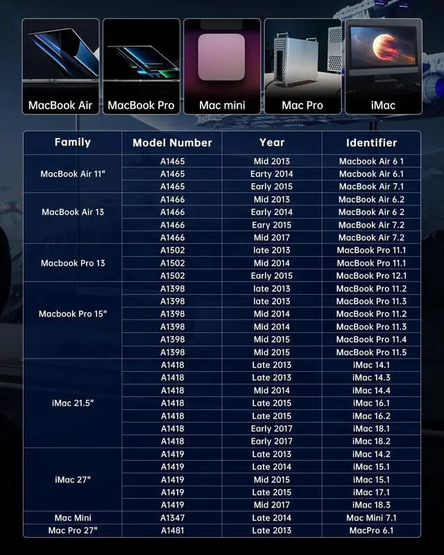 Adapter Needed: Suitable for Mac-compatible devices such as MacBook Air models A1369 (2015, 2013-2014), A1465 (2013-2015), A1466 (2013-2017); MacBook Pro Retina models A1502 (2013-2016), A1398 (2013-2015); Mac mini (A1347 2014); Mac Pro (A1481 2013); and iMac (A1418, A1419 2012-2018). Easily replace your old SSD with plug-and-play installationno adapter required. ^^
