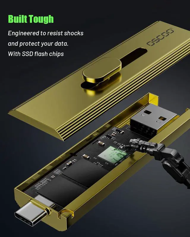 OSCOO 512GB External SSD Hard Drive, Up to 1100MB/s USB 3.2 Gen 2 Dual-Drive Type-C + A, Portable Thumb SSD-Stick, 2-in-1 Flash Drive for iPhone 15/16/17, Android, Mac, Laptop, Gaming