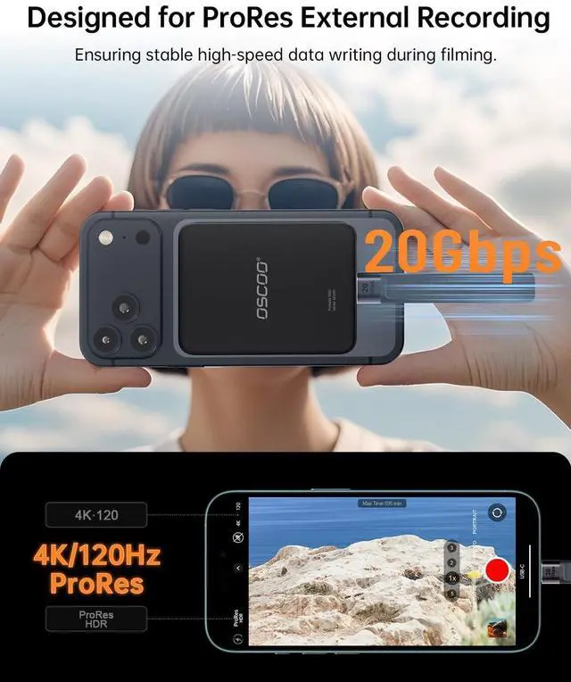 Note: Maximum speed requires a USB 3.2 Gen 2x2 supported port ^^ STRONG MAGSAFE COMPATIBILITY & MAGNETIC ATTACHMENTInstantly snap onto iPhone 15/16/17 Pro and other MagSafe-compatible devices. The powerful built-in magnet also attaches securely to metal surfacessuch as laptop lids, monitor frames, or desk organizerskeeping your storage tidy, visible, and always within reach ^^ EXPAND IPHONE STORAGE & RECORD DIRECTLYFree up your iPhones internal storage with high-speed external expansion. Supports direct high-quality recording, including Apple ProRes, to the SSD when used with compatible devices and appsideal for capturing more without worrying about space limits ^^ ULTRA-DURABLE & POCKET-SIZED DESIGNDesigned for life on the move. The slim aluminum alloy shell resists daily bumps and impacts while enhancing heat dissipation. Compact and lightweight, it slips easily into pockets or backpacks for campus, commuting, or travel ^^ ONE SSD FOR STUDENTS, GAMERS & PROFESSIONALSA versatile storage solution for every scenario. Pre-formatted exFAT for easy use across iPhone, Mac, Windows laptops, Android devices, tablets, and gaming consoles. Perfect for backing up coursework, carrying portable game libraries, or managing large creative projects.