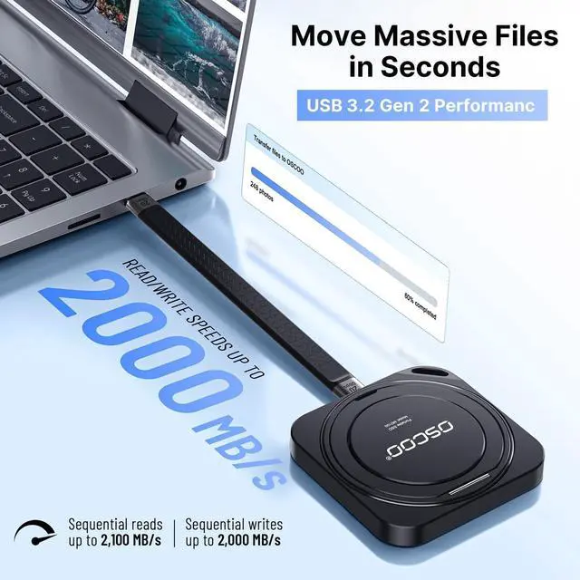 PERFORMANCE: Transfer files in seconds, not minutes. Powered by USB 3.2 Gen 2x2 with read speeds up to 2000MB/s (CrystalDiskMark tested), easily handle large 4K videos, RAW photos, and game files.