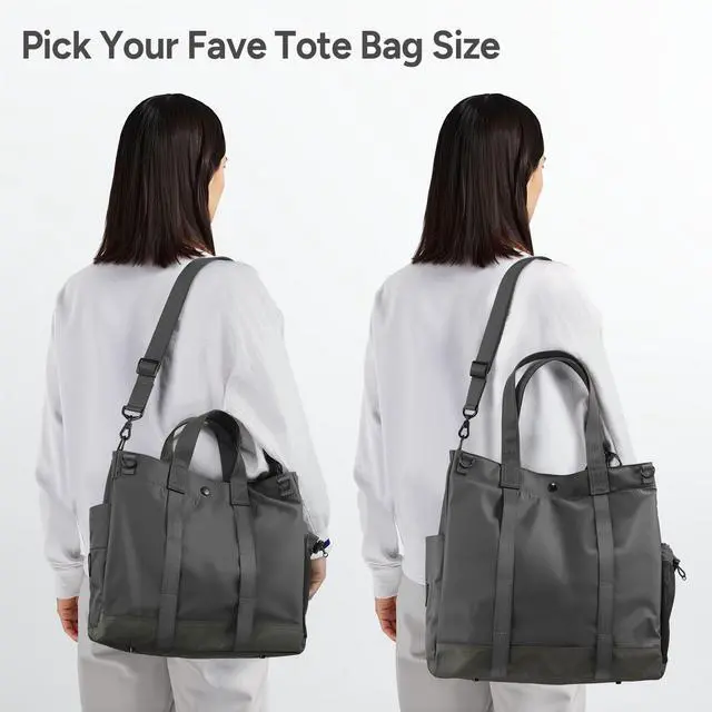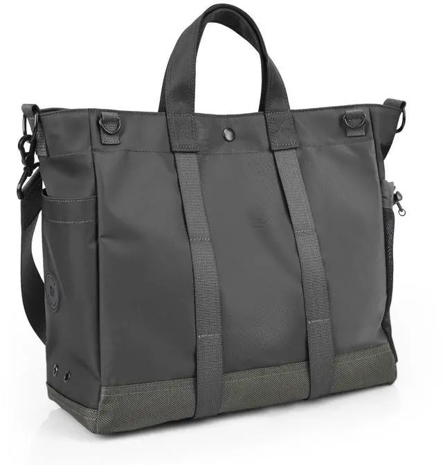 City Hike Tote Bag (L) The Travel inspira tote bag is a versatile and durable accessory for both women and men. Made from high-quality nylon and PVC, it is wrinkle-free and easy to clean. The reinforced flat bottom with four metal feet protects against scratches. The bag features a smooth zipper, sturdy metal hardware, and reinforced stitching for added durability. With ample storage, the tote bag includes a padded interior pocket for tablets and side pockets for water bottles and umbrellas. It measures 14.57 x 13.78 x 6.30 inches and can fit most 13'', 14'', 15'', and 15.6 '' laptops.