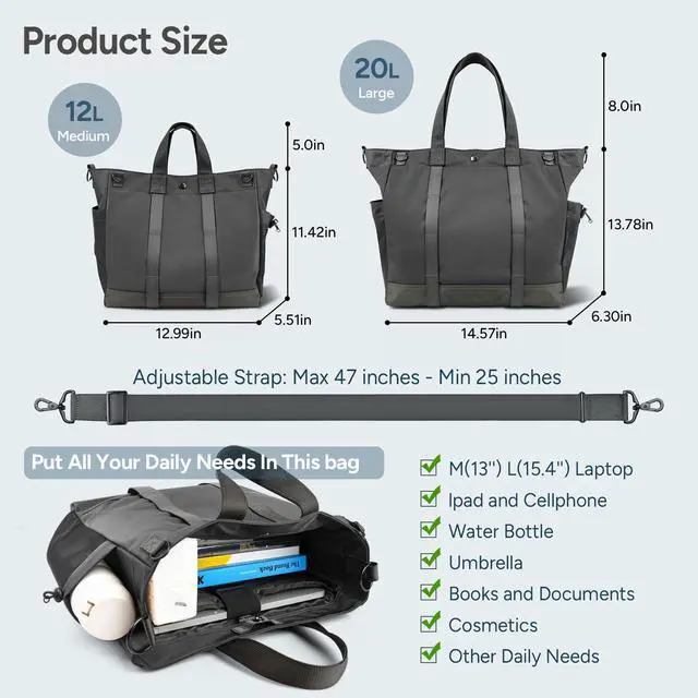 • Perfect Size Work Bag: This work bag for women measures 12.99x11.42x5.51 inch; net weight:1.32 lb.It is sui
