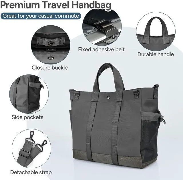 travel inspira Laptop Bag for Women/Men 13''/15.6'' Laptop Travel Tote Bag, Waterproof Computer Work Bag with Reinforced Bottom, Professional Shoulder Handbag for Teacher Office Business, Gray