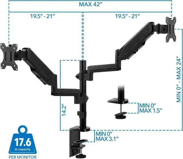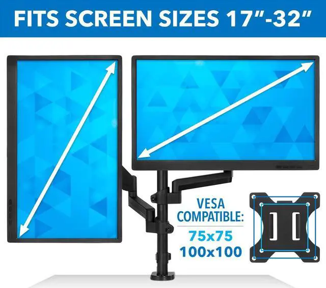 Compact Workspaces: This dual monitor desk mount supports side-by-side and vertical stacking configurations, making it perfect for traders, programmers, content creators, and gamers who need a space-saving multi-screen setup.