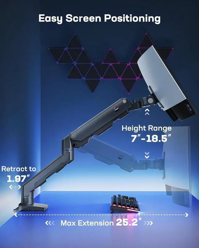 Heavy-Duty Durability & Stability: Built with high-strength aluminum alloy and 30% thicker arms, this heavy-duty monitor mount has passed 20, 000+ fatigue tests, ensuring long-lasting support and enhanced screen stability for various setups.